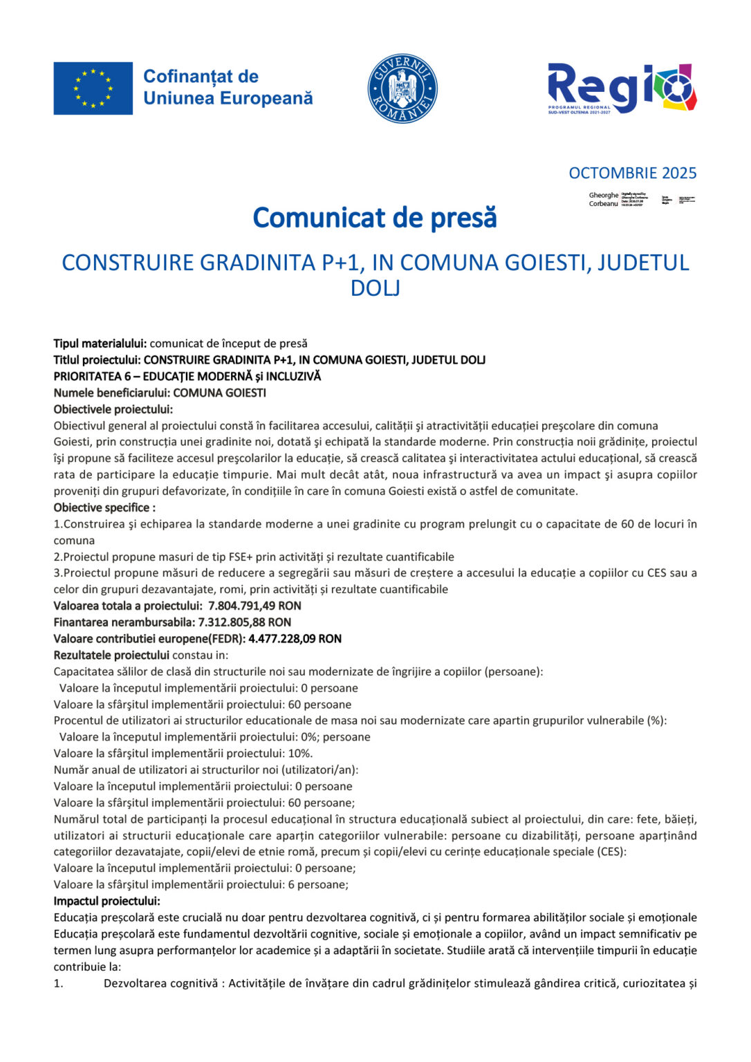 AnunturiComunicate de PresaComunicat de presă – CONSTRUIRE GRADINITA P+1, IN COMUNA GOIESTI, JUDETUL DOLJ Jurnalul Olteniei 15 ianuarie 2026 Share Comunicat de presa Goiesti SHARE Comunicat de presa Goiesti Jurnalul Olteniei See Full Bio Distribuie acest articol Facebook Whatsapp Whatsapp Email Copy Link Print Articolul precedent Severin: Droguri de 12.000 de euro vândute în stradă Articolul următor Bogdan Vătăjelu vrea să se întoarcă la Universitatea Craiova: „Doar acolo e acasă” Ultima ora Tânăr din Craiova, reținut după o anchetă DIICOT Imobiliare Craiova: Prețurile au explodat în 2025 Jurnalul unui interist din România. Dă-mi voie să-mi fie un pic de teamă Vâlcea: Două persoane rănite în urma unui impact accident rutier, la Orlești Anunț angajare Nicuşor Dan: Democraţia a învins războiul hibrid în 2025 Stadion la Slatina, doar în promisiuni. La Piteşti a început construirea noii arene Bărbat reținut pentru agresiune domestică: și-a lovit soția și i-a furat telefonul Noapte de coșmar în localitatea gorjeană Scoarța: bărbat înarmat cu cuțitul pus sub arest Lovitură pentru traficanții de „moarte albă” din Slatina: Interceptări explozive și ani grei de închisoare