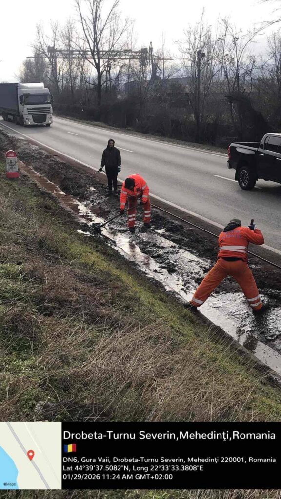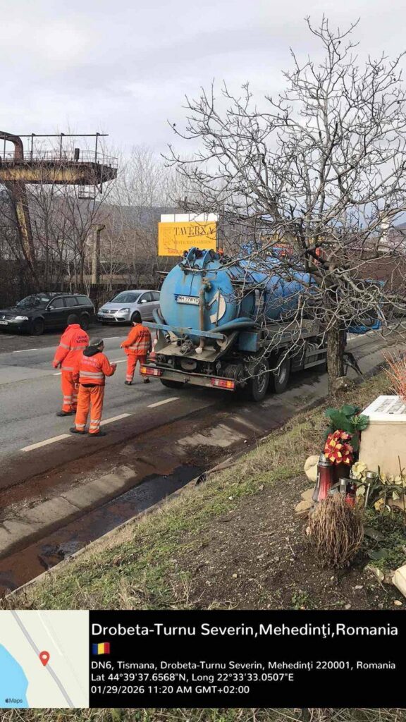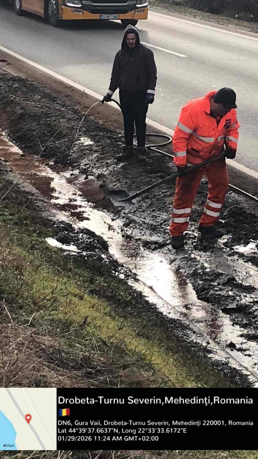 Un accident rutier produs pe DN6 în cursul zilei de 28 ianuarie, a dus la scurgerea de motorină în rigola stradală, pe o lungime de aproximativ 50 metri.
