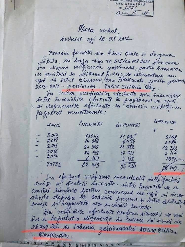 Acuzații grave: Pagubă de 28.000 de lei la Brastavățu