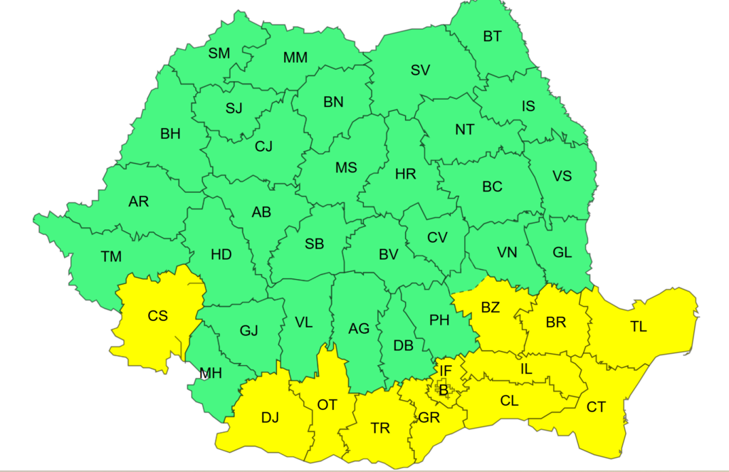 În județele Dolj, Olt, Teleorman, Giurgiu, Caraș-Severin, Ilfov (inclusiv București), Buzău, vestul județelor Brăila, Ialomița și Călărași, precum și în Constanța și Tulcea, vor fi intensificări ale vântului cu viteze la rafală de 50…55 km/h, viscolind temporar ninsoarea.