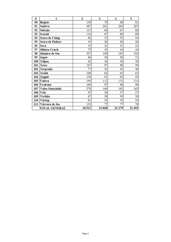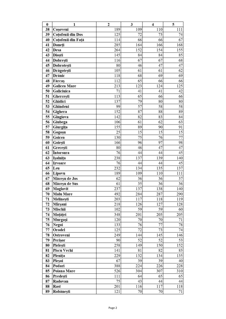 Chiar și comunele care în prima listă păreau dezavantajate recuperează teren aici. Robănești apare cu 121 mii lei, Rojiște cu 138 mii lei, iar Sălcuța cu 115 mii lei.