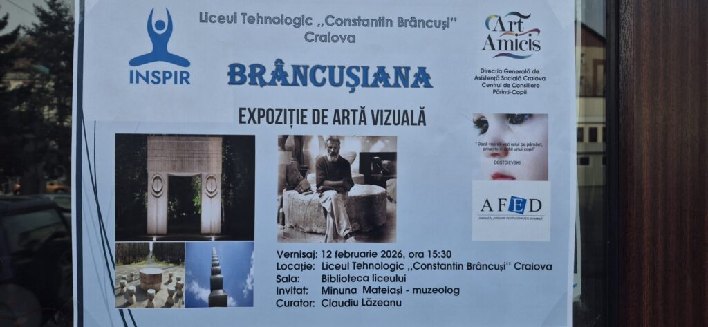 Asociația INSPIR – Inițiativa pentru Nediscriminare, Solidaritate, Participare, Învățare și Responsabilitate, alături de Grupul Art Amicis Craiova și Asociația AFED, au organizat un eveniment dedicat Zilelor lui ,,Constantin Brâncuși’’ adresat publicului larg, sub egida „BRÂNCUȘIANA” – Expoziție de Artă Vizuală.
