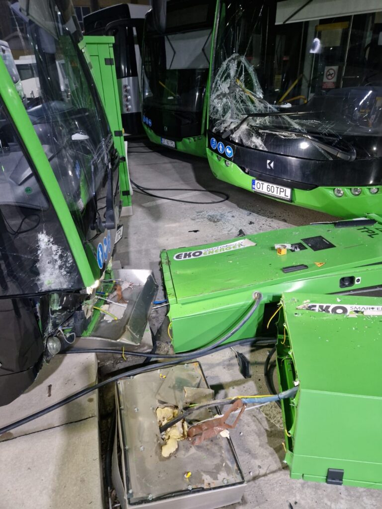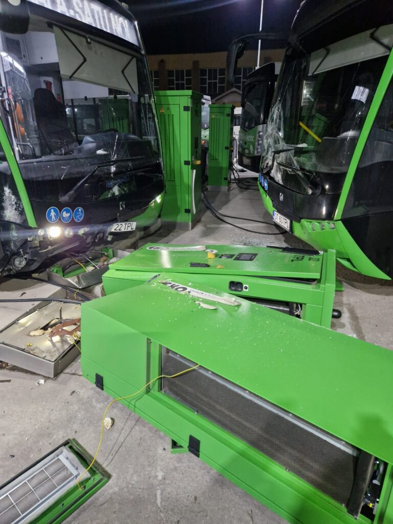 Două autobuze electrice au fost avariate, în această dimineaţă, chiar în curtea operatorului de transport în comun din Slatina, Loctrans. În plus, două staţii electrice de încărcare au fost de-a dreptul „retezate“, existând pericol de electrocutare. S-a încercat mușamalizarea evenimentului.