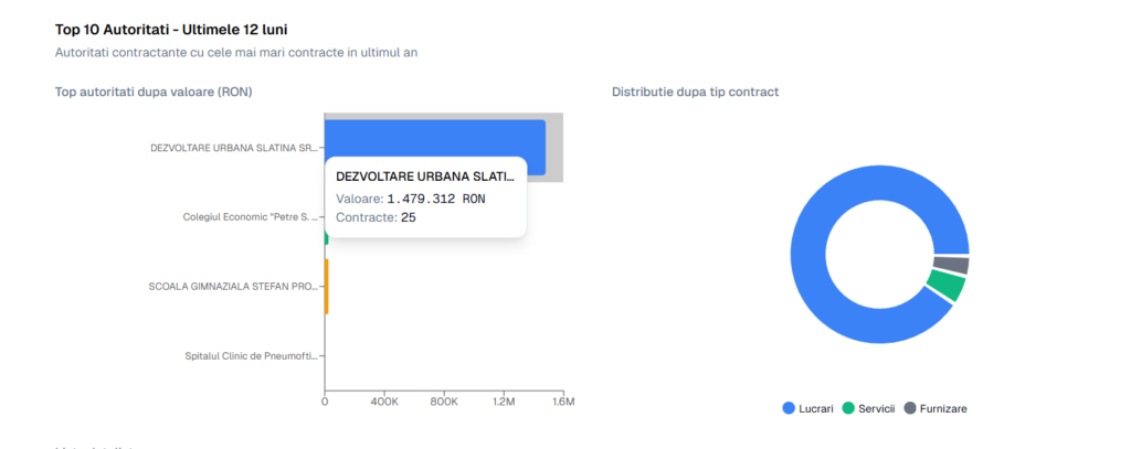 - Volumul: 21 de contracte de lucrări și 3 de servicii, totalizând 1.479.312 RON.
