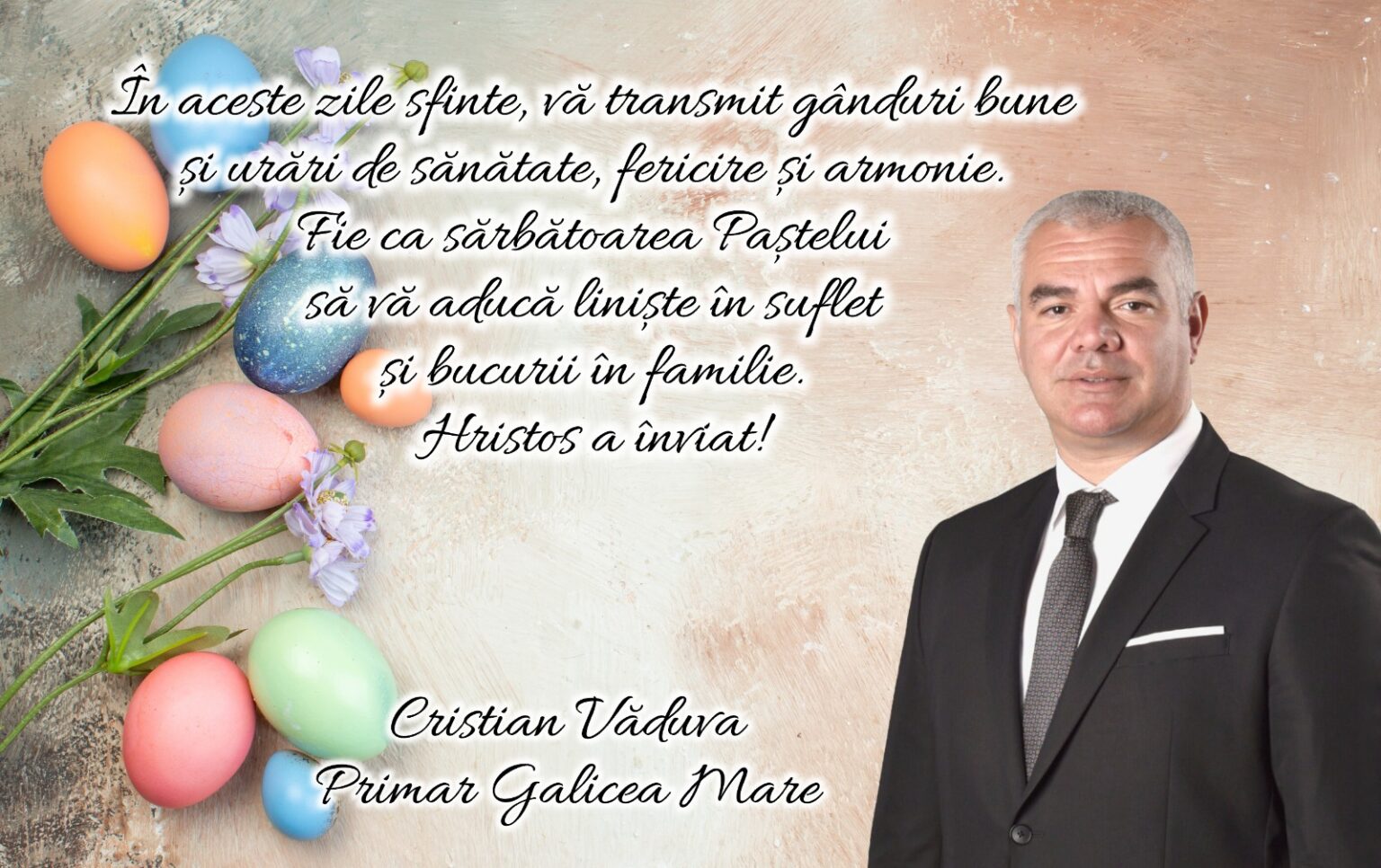 DoljOlteniaUrarea de Paște a primarului comunei Galicea Mare Jurnalul Olteniei 10 aprilie 2026 Share Urarea de Paște a primarului comunei Galicea Mare SHARE Jurnalul Olteniei See Full Bio Distribuie acest articol Facebook Whatsapp Whatsapp Email Copy Link Print Articolul precedent Urarea de Paște a primarului comunei Brădești Articolul următor Radu Marinescu respinge acuzațiile de „blat” cu Nicușor Dan ULTIMA ORA Mircea Lucescu, condus pe ultimul drum cu onoruri militare Craiova: Accident mortal pe centura de nord Educatoare din Craiova, cercetată pentru purtare abuzivă Slatina: De Mezzo desfiinţează o nouă direcţie şi-i transferă atribuţiile către firma controlată de omul său Craiova: Puiuț de ponei la Hipodrom, noua vedetă în parc Urarea de Paște a primarului comunei Rojiște Urarea de Paște a primarului comunei Perișor Radu Marinescu respinge acuzațiile de „blat” cu Nicușor Dan Urarea de Paște a primarului comunei Galicea Mare Urarea de Paște a primarului comunei Brădești