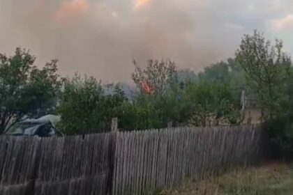 Incendiu în Olt. Focul mistuie vegetația și mai multe gospodării