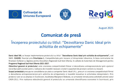 Începerea proiectului cu titlul: „Dezvoltarea Danic Ideal prin achiziția de echipamente”