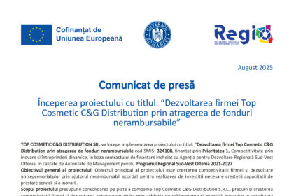 Începerea proiectului cu titlul: „Dezvoltarea firmei Top Cosmetic C&G Distribution prin atragerea de fonduri nerambursabile”