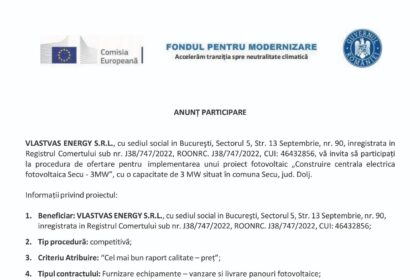 Anunt depunere solicitare de obţinere a Autorizaţiei de mediu pentru activitatea: Alimentare cu apa, canalizare si statie de epurare in satul Campeni, Comuna Pielesti, Judetul Dolj