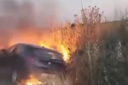 BMW făcut scrum pe un drum din Dolj. Șoferul era băut și a ieșit de pe carosabil