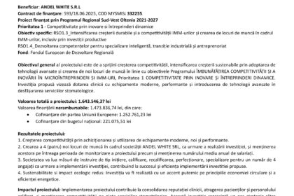 Comunicat de presă – Începerea proiectului „Creșterea competitivității societății ANDEL WHITE S.R.L”