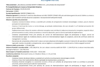 Dezvoltarea activității DENTIFY STANICA S.R.L. prin achiziția de echipamente