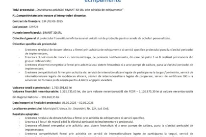 Dezvoltarea activității SIMART 3D SRL prin achiziția de echipamente