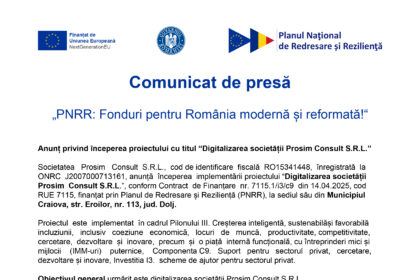 Comunicat de presă – „PNRR: Fonduri pentru România modernă și reformată!“