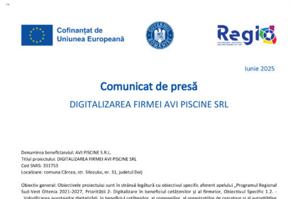 Comunicat de presă – Digitalizarea firmei Avi Piscine SRL