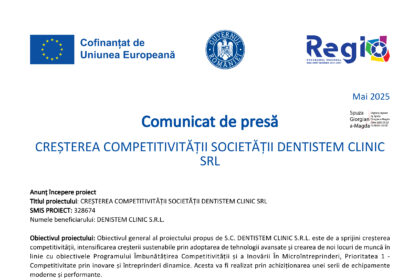 Comunicat de presă – Creșterea competitivității societății Dentistem Clinic SRL