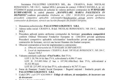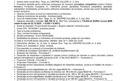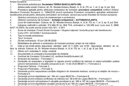 Anunt privind organizarea achizitiei de echipament – autobasculanta