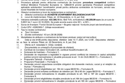 Anunt privind organizarea achizitiei echipament – buldoexcavator