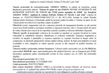 Comunicat de presă – Finalizare proiect: ”Schema de ajutor de stat SPRIJIN PENTRU INVESTIȚII ÎN NOI SUPRAFEȚE OCUPATE DE PĂDURI din PNRR pentru suprafața de 4,0848 ha, beneficiar GHERGU OPREA –amplasat în comuna Dobrești, Tarlaua 19, Parcela 3, jud. Dolj”