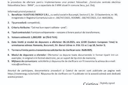 Anunț participare procedură de ofertare