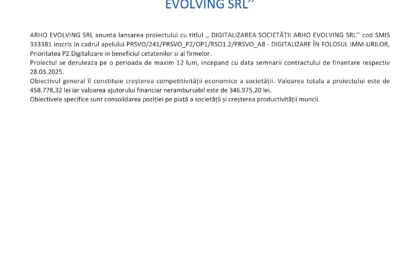 Comunicat de presă – Anunț începere proiect „DIGITALIZAREA SOCIETĂȚII ARHO EVOLVING SRL”