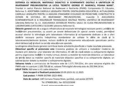 COMUNICAT DE PRESA | PNRR – FONDURI PENTRU ROMANIA MODERNA SI REFORMATA. ANUNT FINALIZARE PROIECT