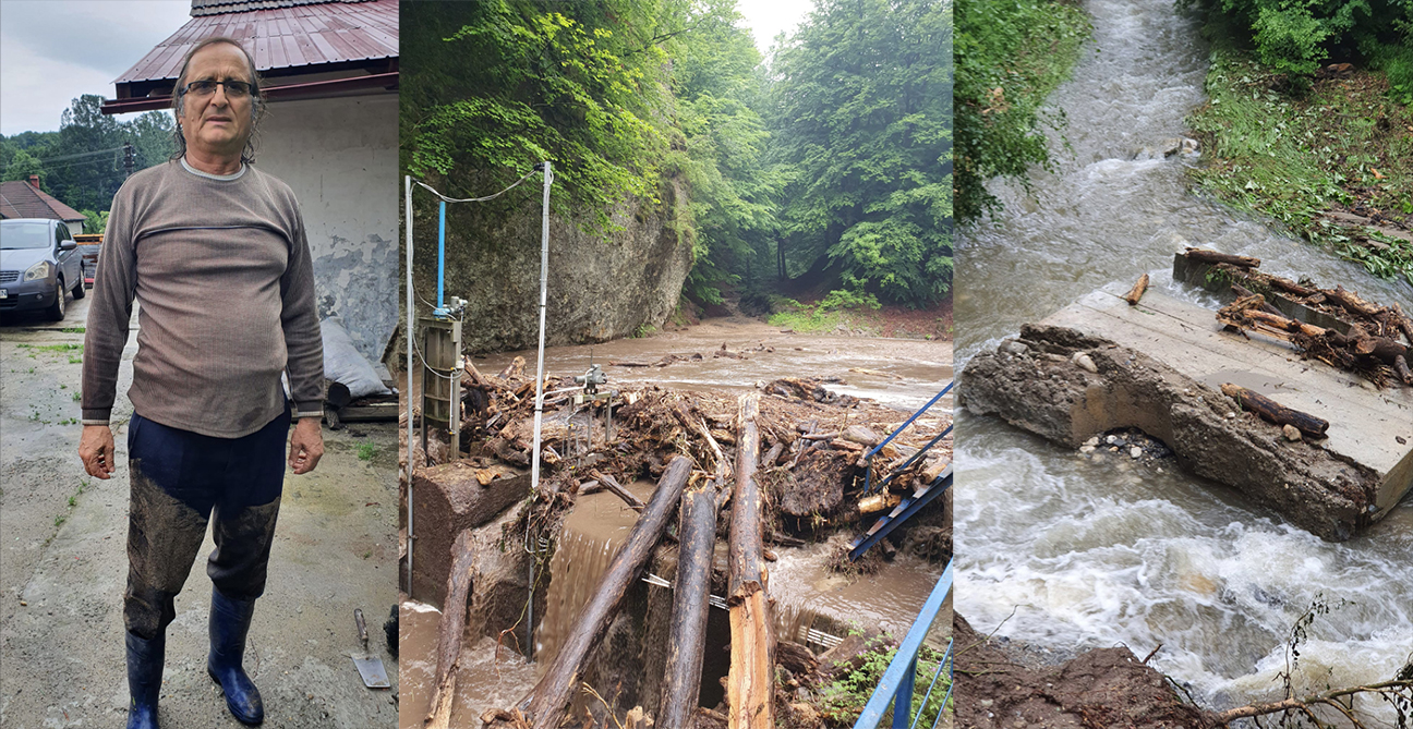 VIDEO! Apă cu porția, drum rupt spre Schitul Pătrunsa. Familii izolate, un dispensar și case în pericol de prăbușire din cauza alunecărilor