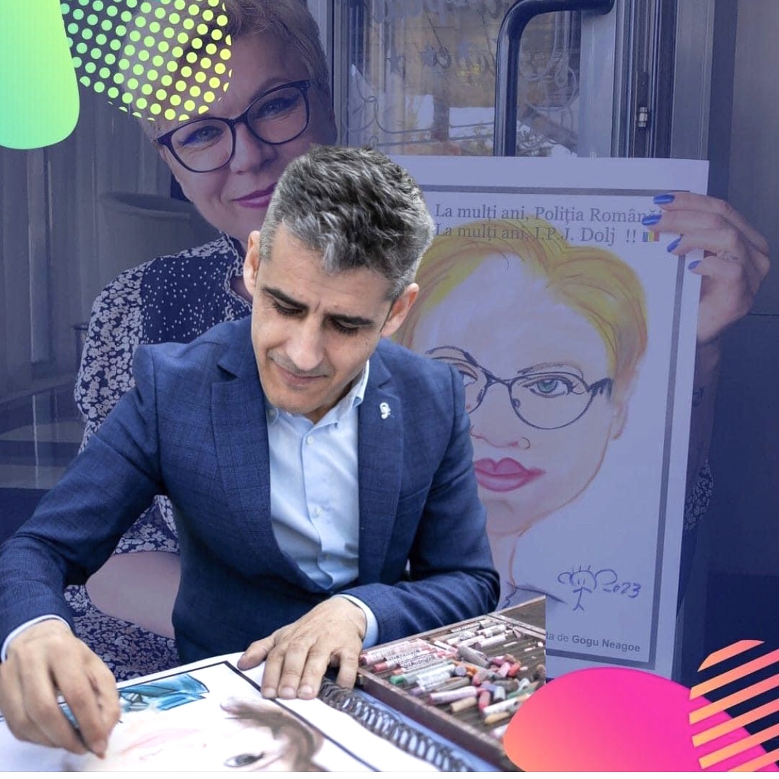 Caricaturistul Gogu Neagoe, alături de Mateo, un copil cu paralizie cerebrală, azi, la Hope Run