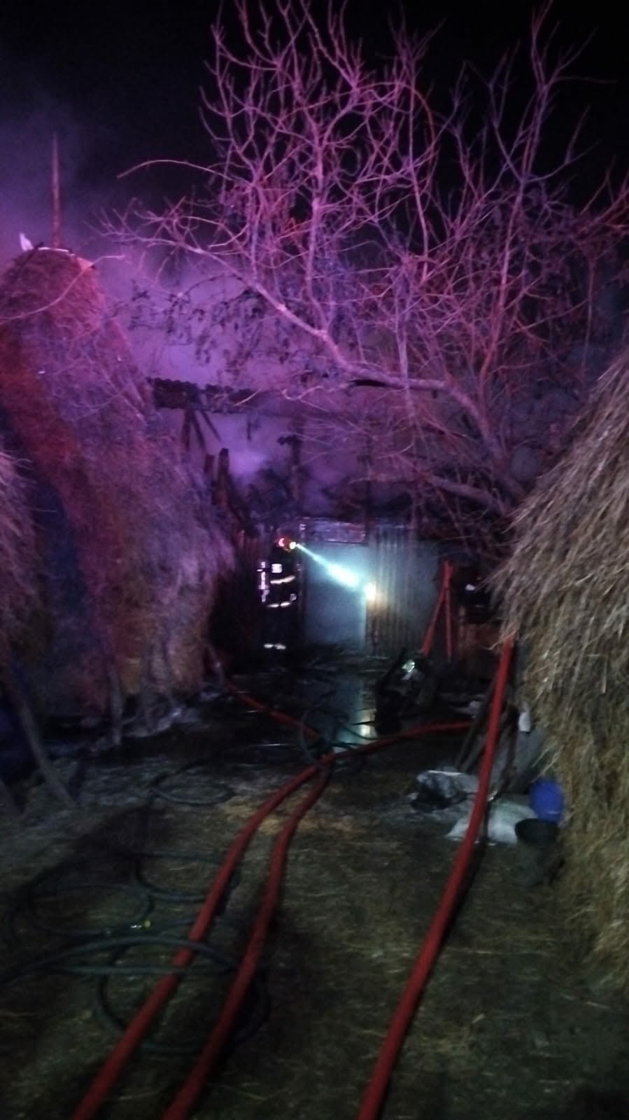 Incendiu la o gospodărie din Câineni. Pompierii au salvat două locuințe și trei clăi de fân