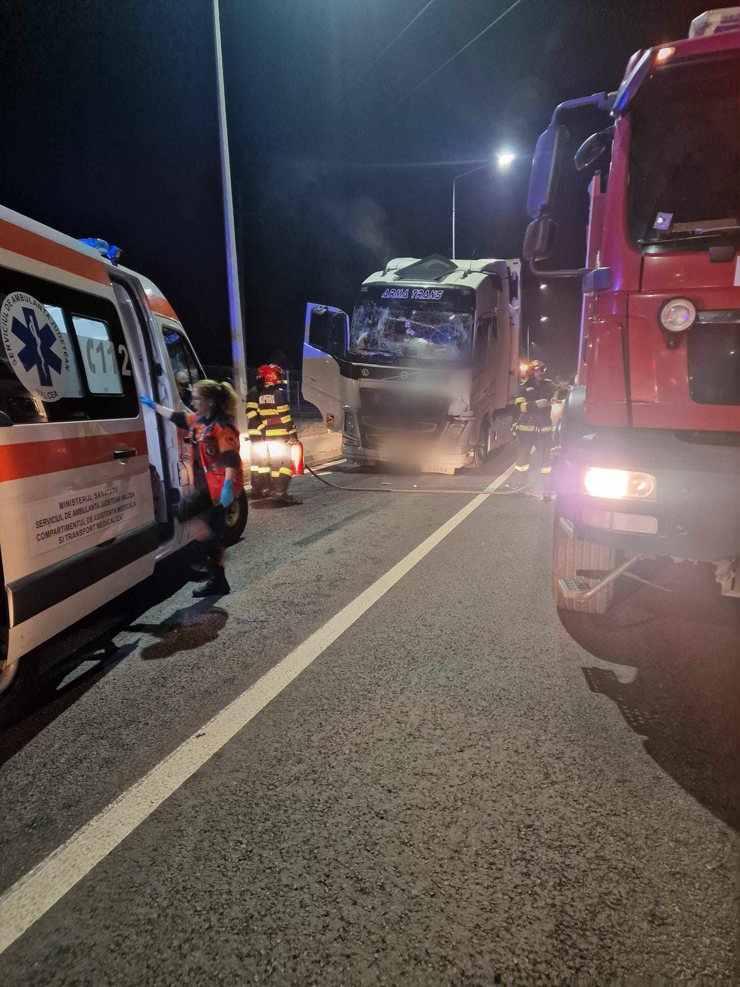 Impact între două tiruri la Rm. Vâlcea, pe DN 7