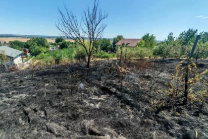 Incendiu de vegetație la Prundeni! Pompierii vâlceni au salvat locuințele din apropiere