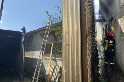 Hală cu rumeguș cuprinsă de flăcări la Ionești