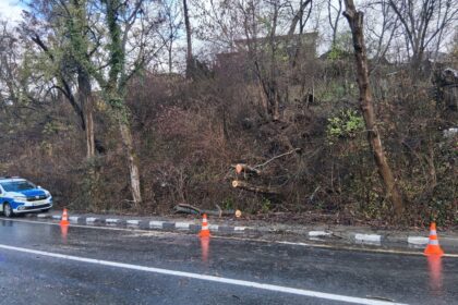 Un copac căzut pe carosabil a lovit un autoturism aflat în mișcare la Vlădești