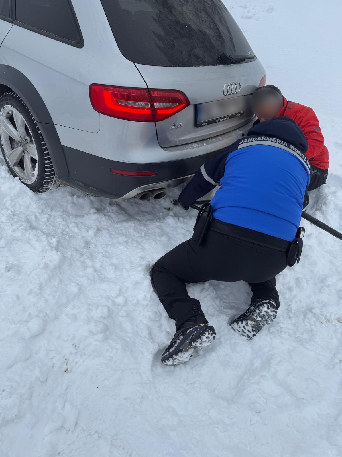 Persoane blocate în zăpadă pe traseul către vârful Cozia, salvate de jandarmii montani