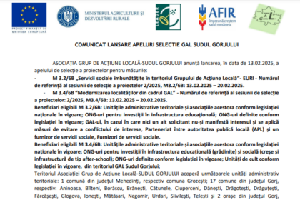 Comunicat lansare apeluri selecție GAL Sudul Gorjului