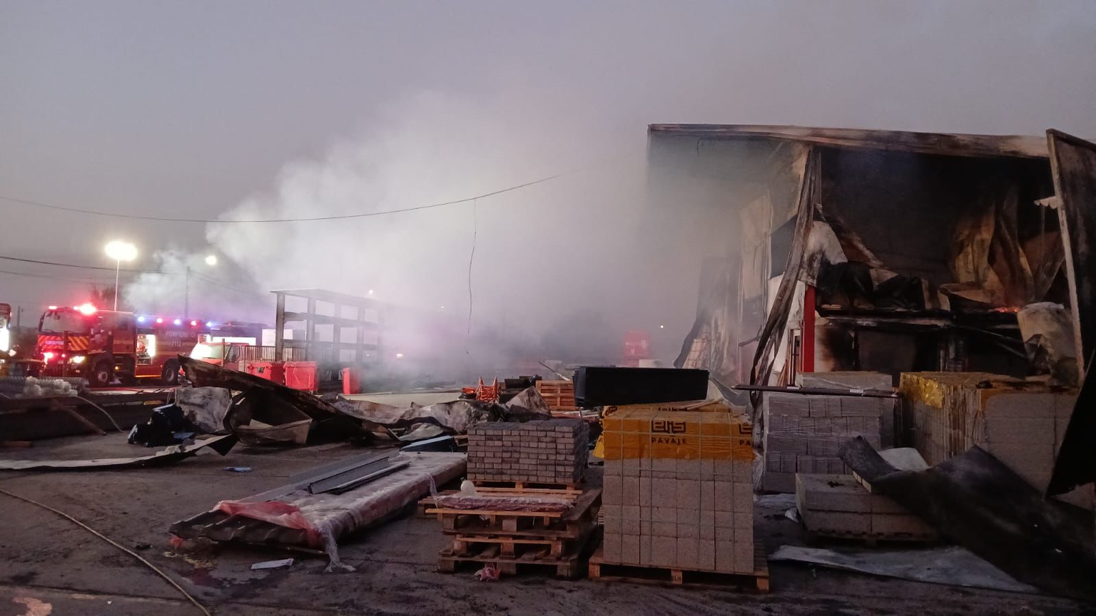 Două hale cu materiale de construcții au ars azi-noapte, în Șimian