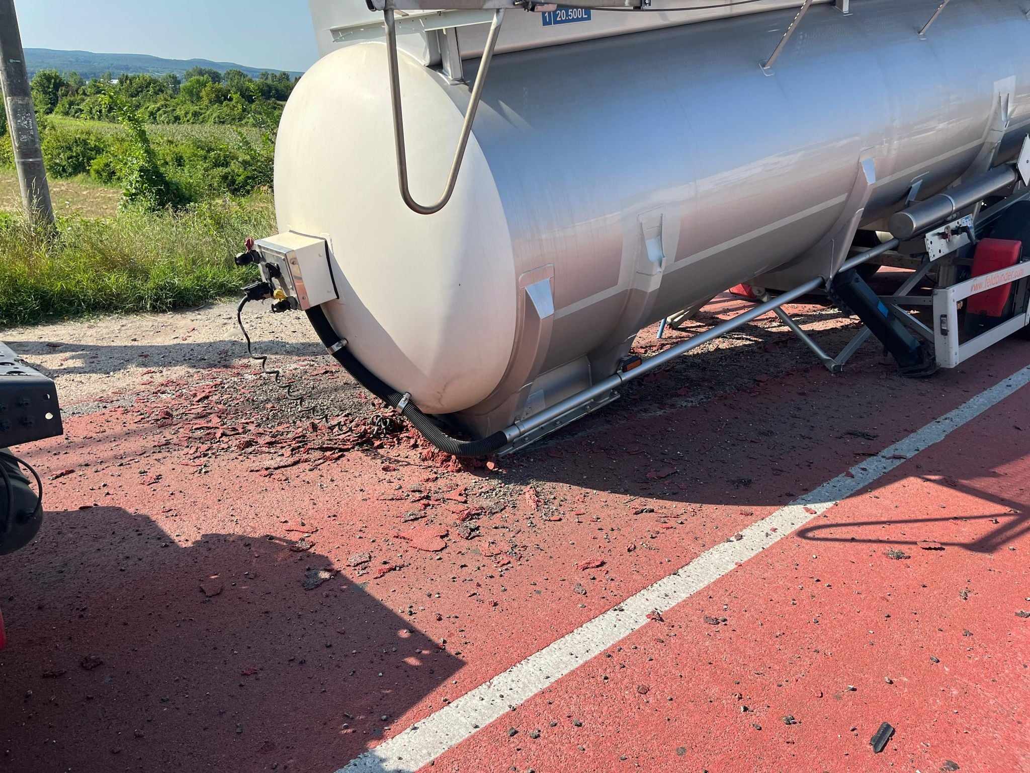 VIDEO/ Cisternă încărcată cu sodă caustică, desprinsă de capul de tractor pe DN 64