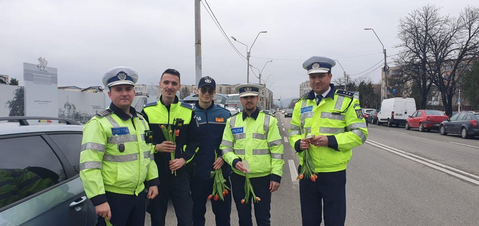 Mehedinți: Șoferițele, ”amendate„ cu mărțișoare și flori de către poliție