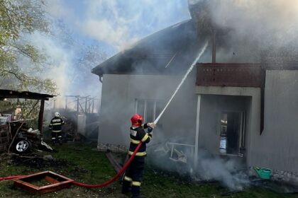 Incendiu puternic în Vâlcea: Un bărbat rănit