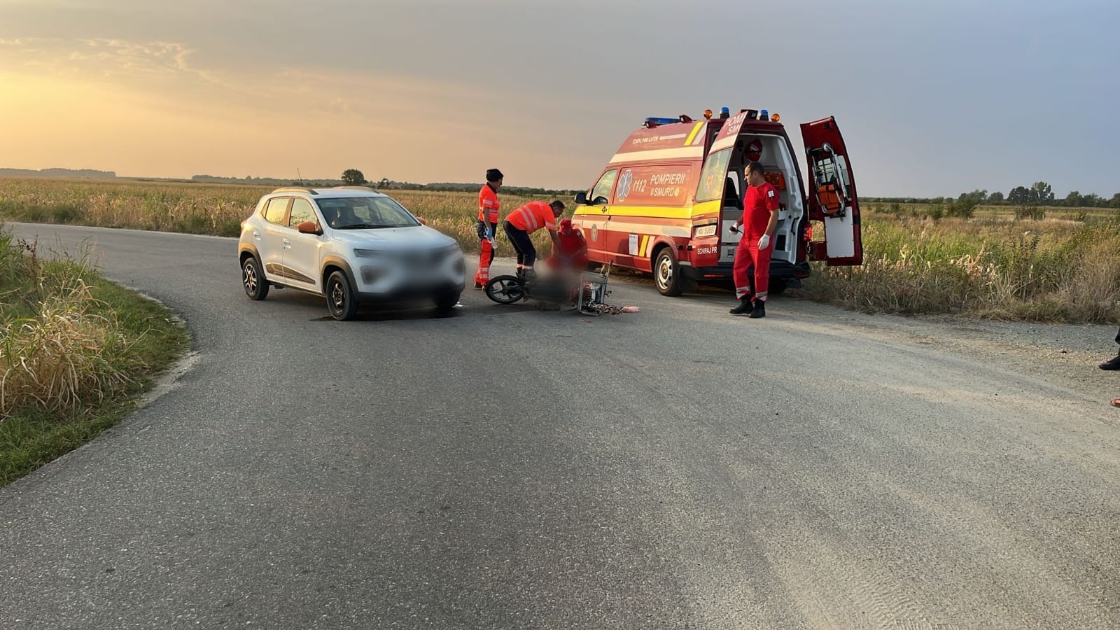 Impact frontal între o mașină și un moped. Unul dintre șoferi a murit