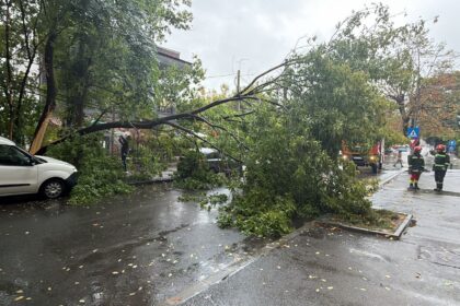Copac căzut pe carosabil în Craiova, pompierii intervin pentru degajarea zonei