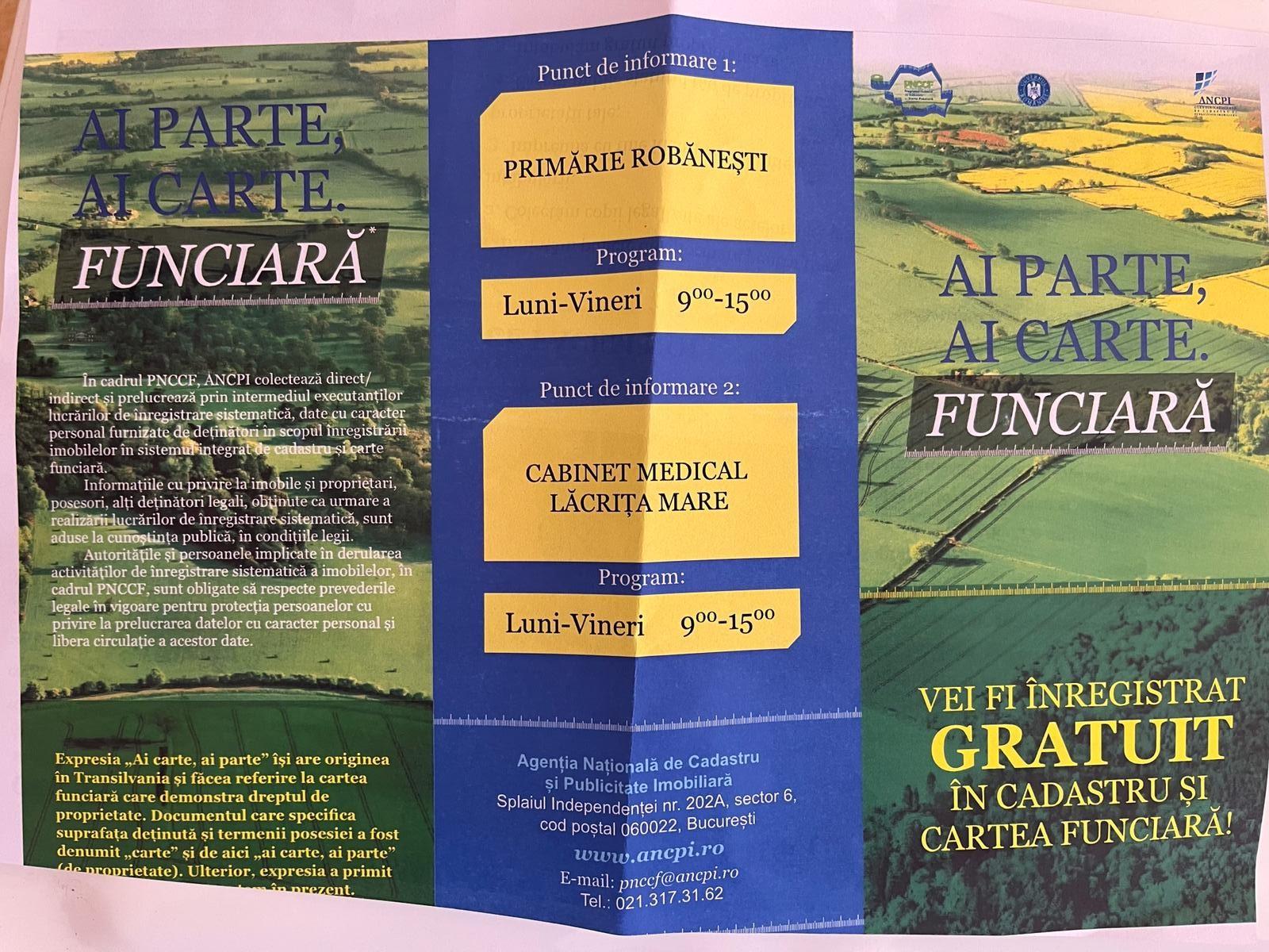 Încep lucrările de cadastru gratuit în comuna Robănești