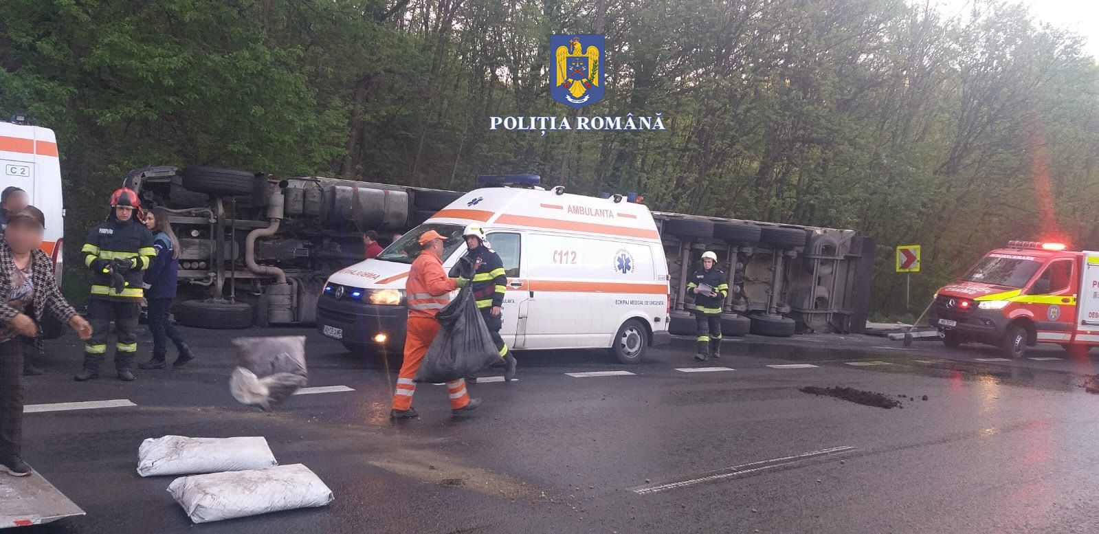 Doi minori au ajuns la spital, după ce un TIR s-a răsturnat pe șosea