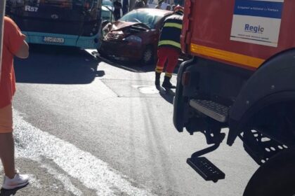 Accident rutier în Craiova: un autoturism și un autobuz, implicate