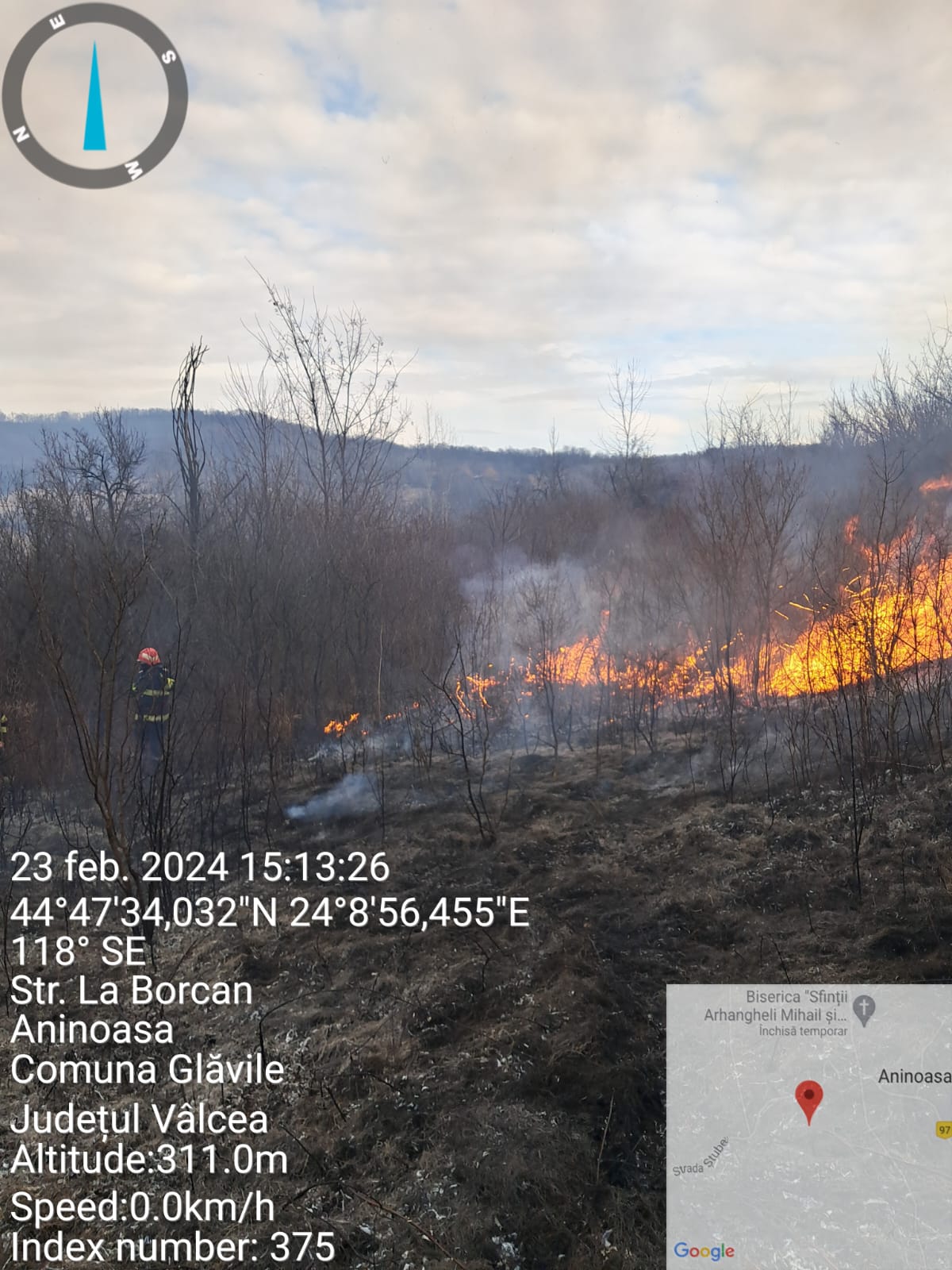Incendiu de vegetație în Vâlcea. O femeie a fost găsită carbonizată