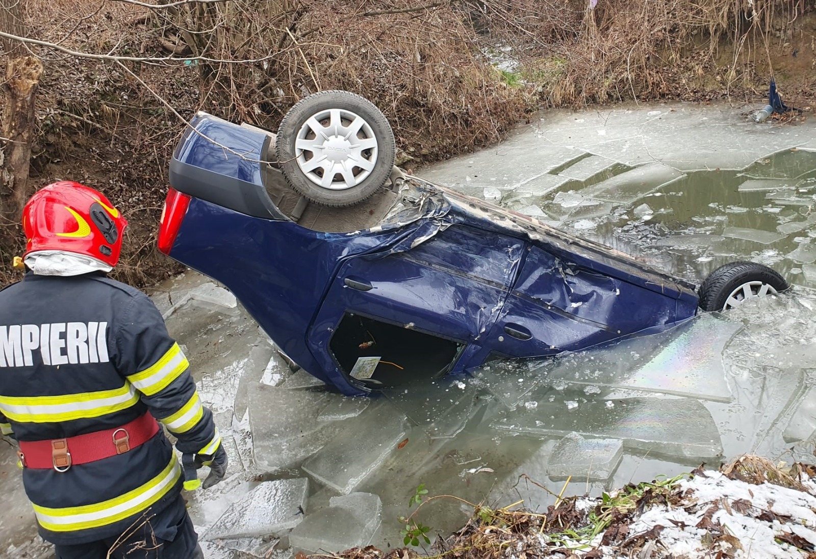 Accident în Vâlcea. A ajuns cu mașina în pârâu
