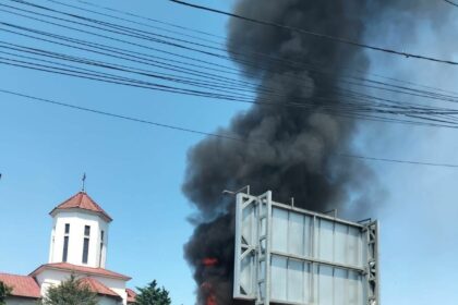 Autoturism mistuit de flăcări în parcarea unui supermarket din Craiova