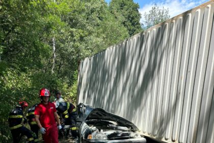 Grav accident în Mehedinți! Un container de TIR a zdrobit un autoturism, șoferul a murit pe loc