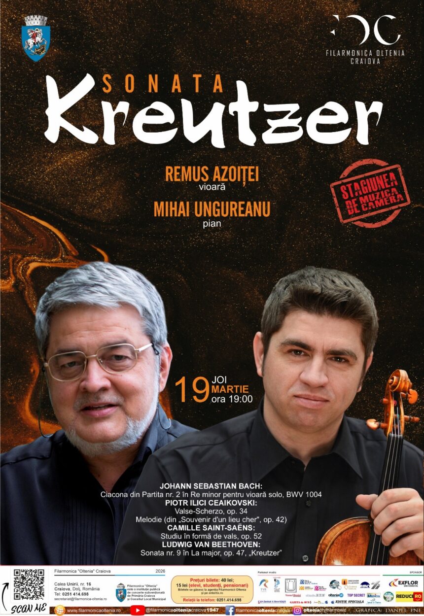 Joi, 19 martie, ora 19:00, Filarmonica „Oltenia” Craiova vă invită la o seară de muzică camerală de excepție, în care violonistul Remus Azoiței și pianistul Mihai Ungureanu interpretează capodopere de…