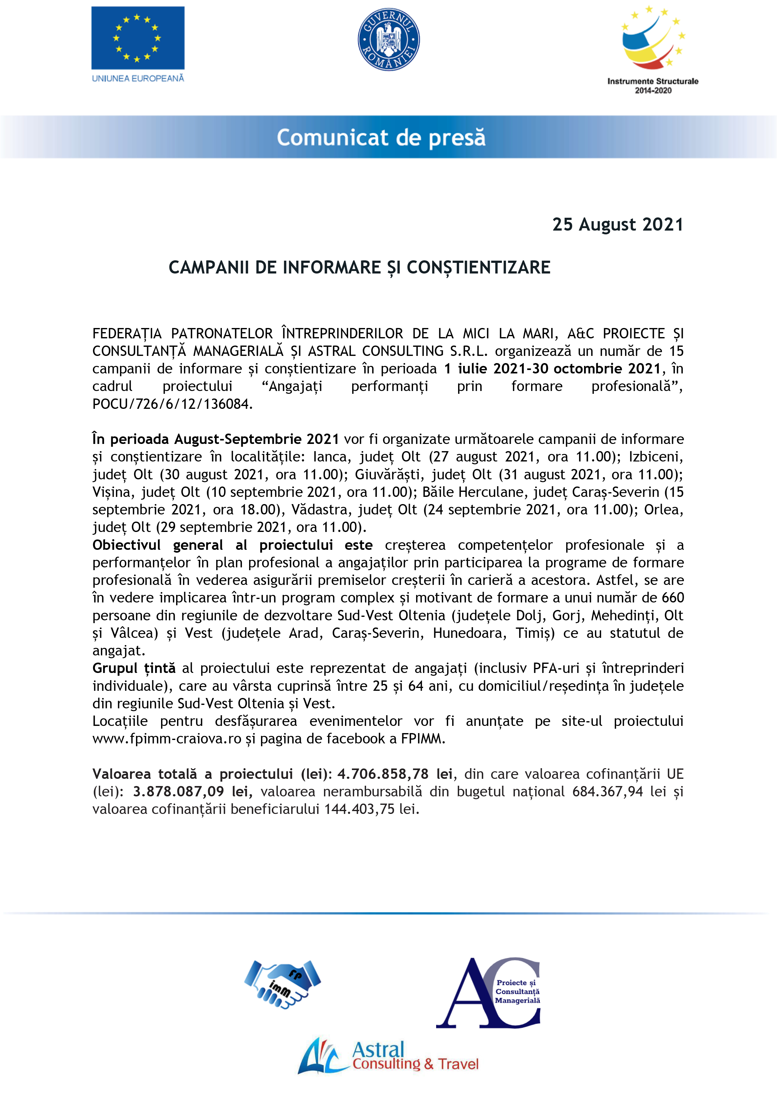 CAMPANII DE INFORMARE ȘI CONȘTIENTIZARE